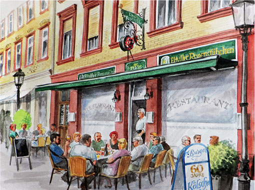 At midday there is usually not a single seat free. The place is packed. Lunch at the Eltville Rosenstübchen is very popular. Honest, down-to-earth cuisine with fresh ingredients for five euros, a price which has remained unchanged for 10 years. Simply everyone comes to the Eltville Rosenstübchen.